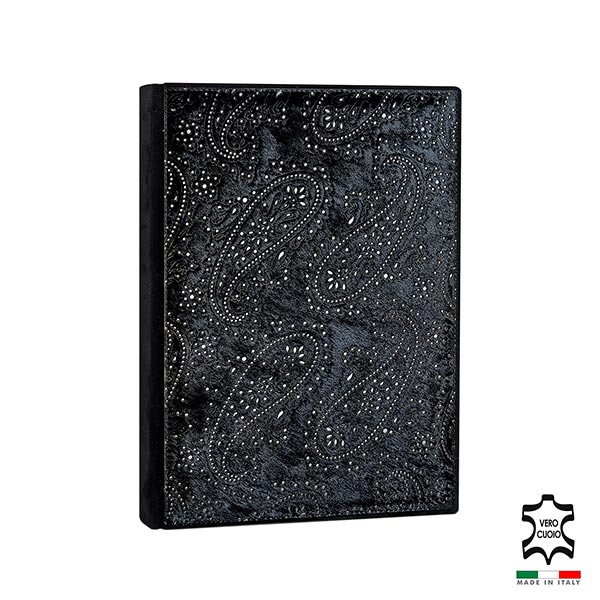 Album in combinazione di due texture: velluto nero e cuoio fantasia cavallino 430.