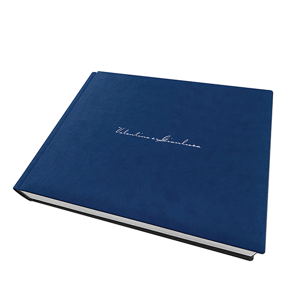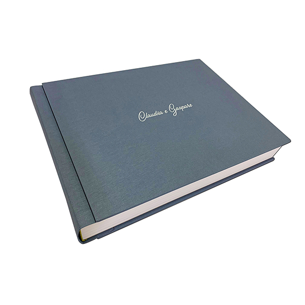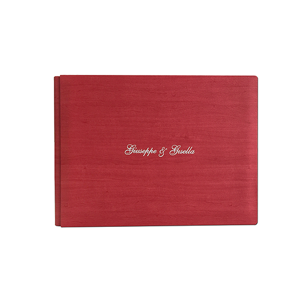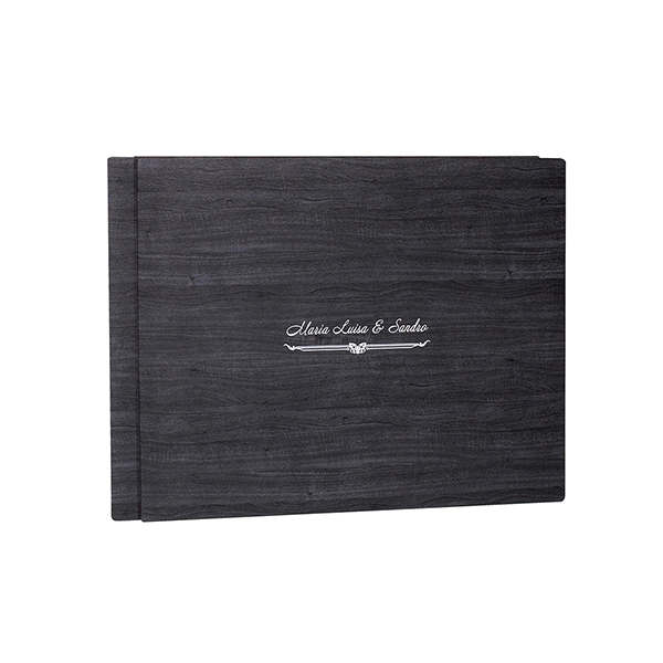 Album in larice tortora personalizzabile con nomi in stampa uv in rilievo.